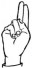 На ћирилици написано ВАЛЕНТИНА КОМАРНИЧКИ састоји се из 19 слова [?]. Исписано ћириличном једноручном азбуком за глувонеме: